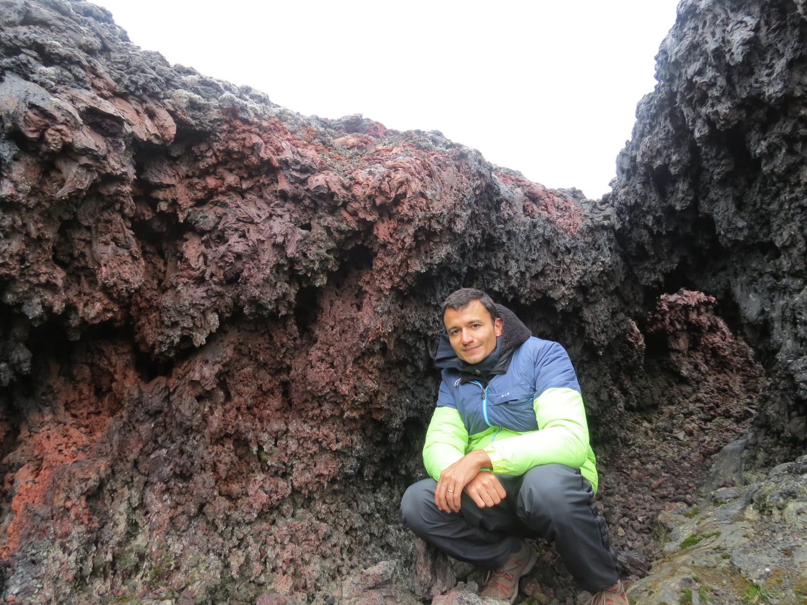 Quando chegamos em “Leirhnjúkur”, fortes rajadas de vento atingiam o local, mas não chovia, e famílias inteiras se divertiam. Poucos minutos depois, porém, o vento aumentou e veio seguido de chuva e granizo, o que espantou praticamente todos que estavam ali. Mas o Krafla era talvez a maior razão para eu ter viajado para o norte da Islândia, e mesmo com as condições hostis do tempo, eu não iria desistir.