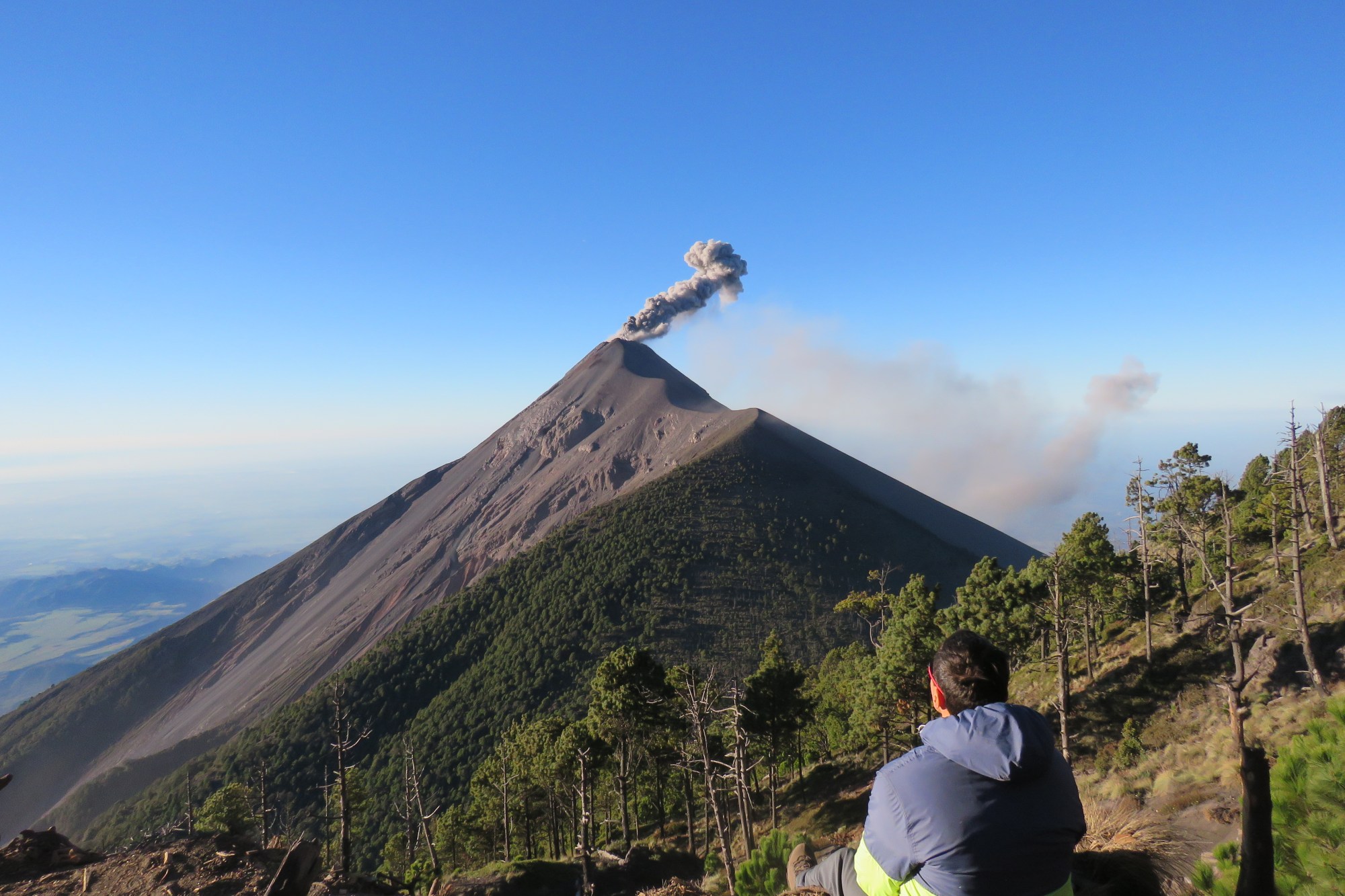 Mas a recompensa é total. Ao chegar próximo ao pico do Acatenango, ficam os acampamentos, e eis que surge o Vulcão Fuego, bem a nossa frente. Logo começam as explosões, e a sensação de estar tão próximo de um vulcão em plena atividade é, com o perdão do clichê, indescritível.