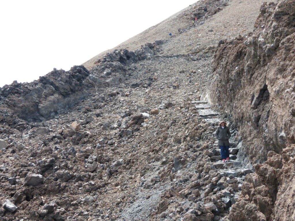 Nossa visita ao colosso aconteceu em maio de 2014 e optamos pela forma mais confortável. Primeiramente, é necessário pegar o teleférico, que leva da estação base , situada a 2.356 metros de altura, até a estação “La Rambleta”, que fica a 3.555 metros. Um percurso de 2.482 metros que leva de 8 a 10 minutos e que tem o bônus de poder apreciar o visual da montanha de uma vista aérea. Em seguida, é necessário ir caminhando (ou escalando?) os últimos 163 metros de desnível entre “La Rambleta” e o topo do vulcão.